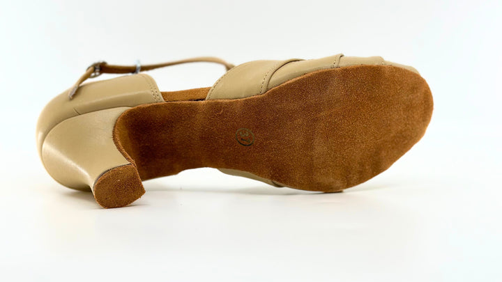 S230B2- Ladies, Classic, Vintage Inspired, Peep Toe, 4 Strap, T-Bar Dance Shoe in Tan Vegan Leather